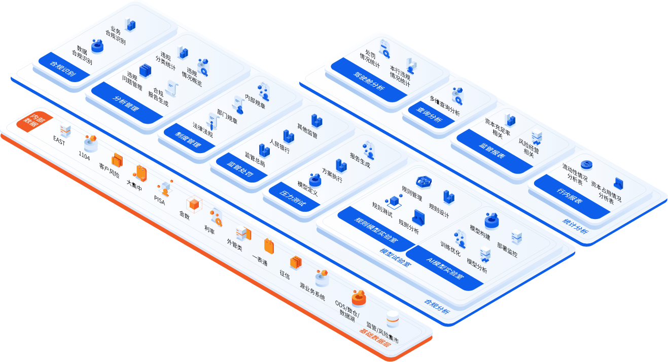 中软融鑫-监管合规分析平台,通过高可用的分布式架构,为金融机构合规分析工作提供高效、稳定的服务体验。平台通过规则模型和AI模型结合,建立覆盖所有合规场景的合规分析识别模型、结合金融机构自身监管报送数据,可针对性地进行合规识别、压力测试等业务分析工作,为金融机构提供更为准确的检测分析结果,提前发现违规业务数据,在保障金融机构合规运营上提供最大助力。