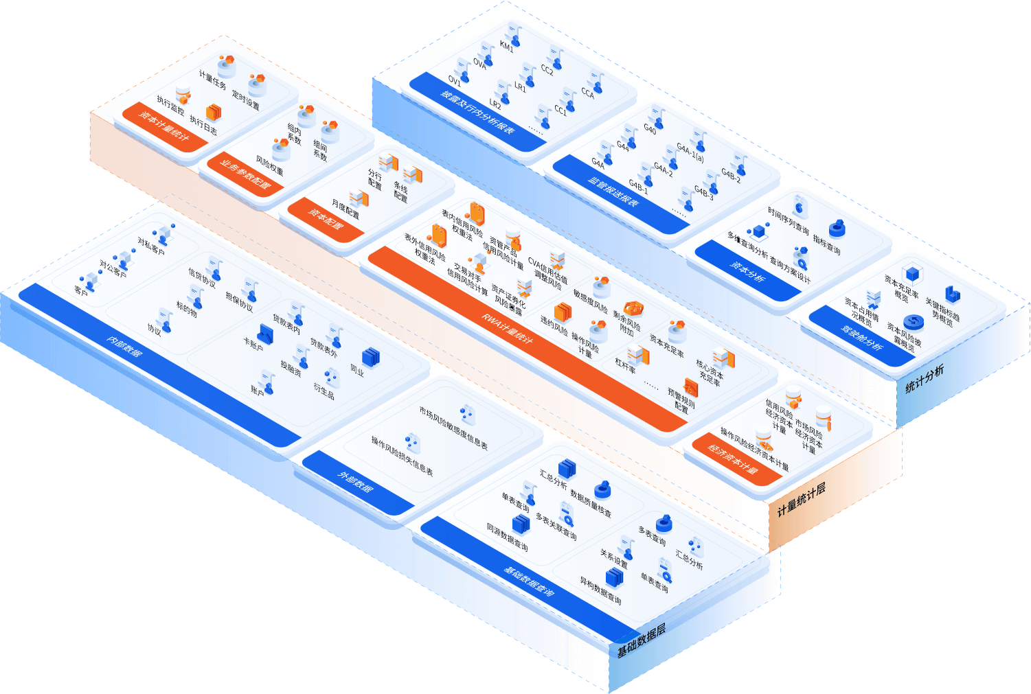 风险加权资本计量引擎,采用中软融鑫自主研发的高可用分布式技术架构,可满足百亿数据级应用,为客户提供稳定、持久的性能支持。